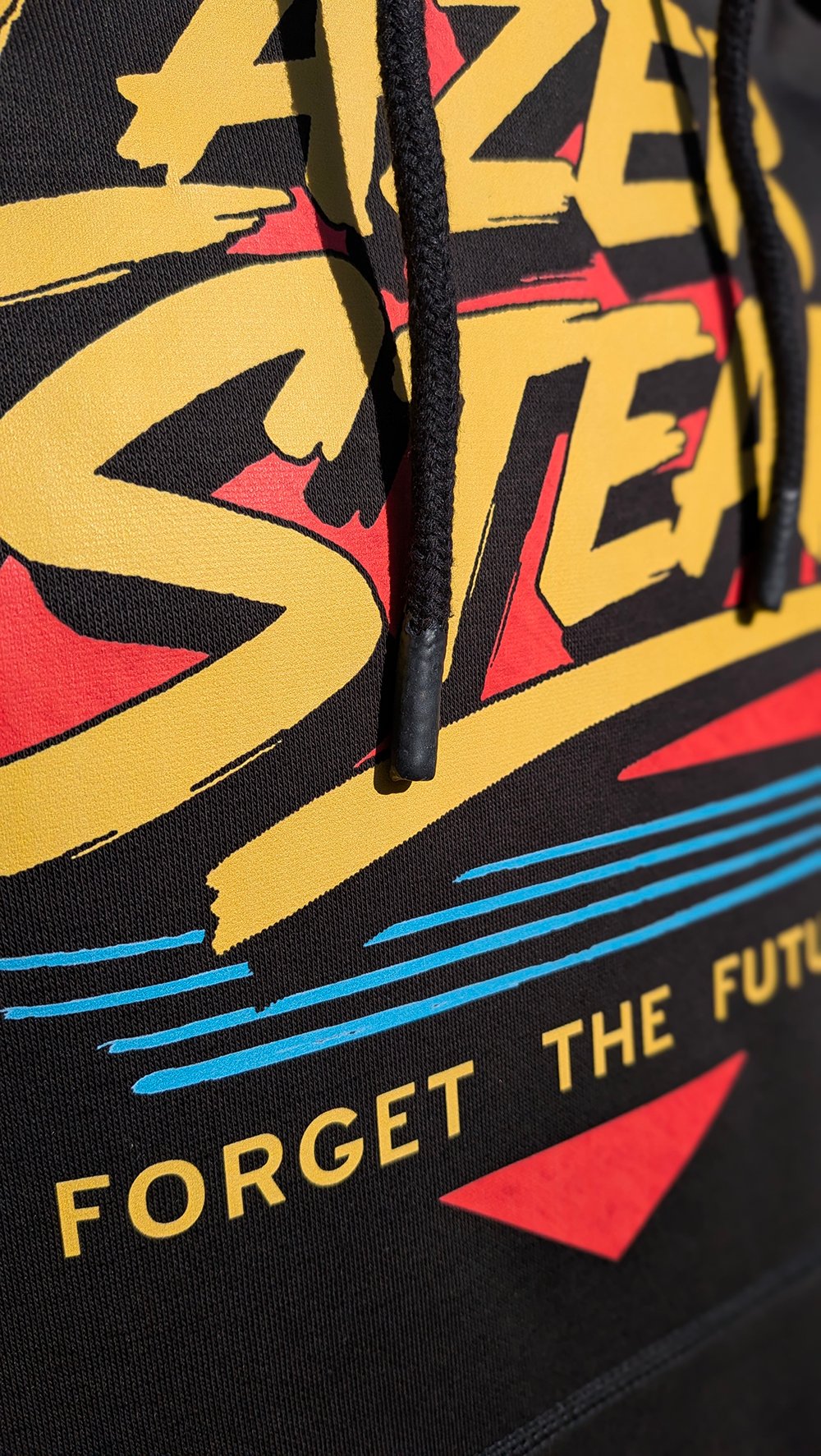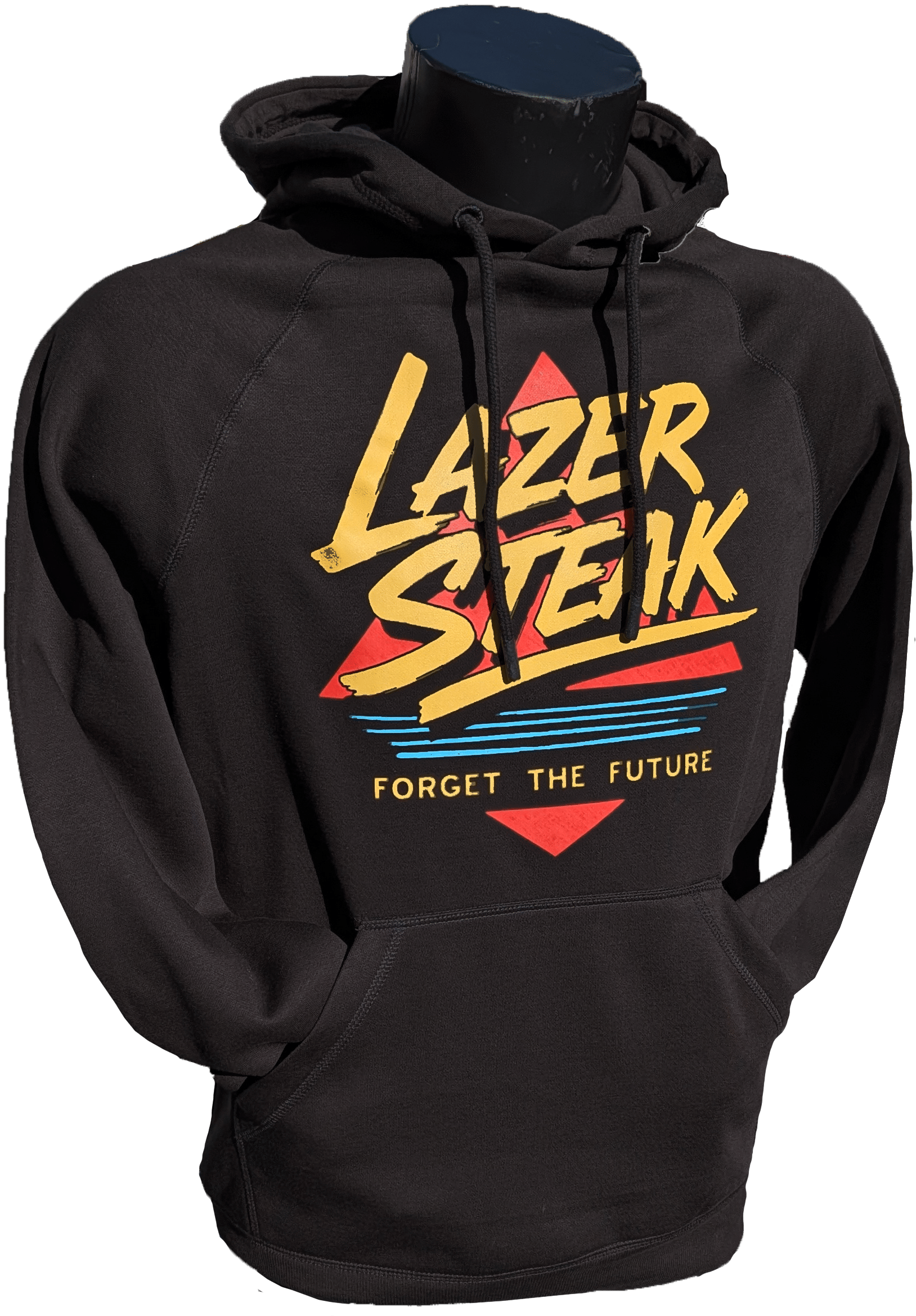 The Lazer Steak hoodie! Featuring protection from the outside world, large front graphic, plot armour, nuclear proof materials & wax dipped drawstrings.